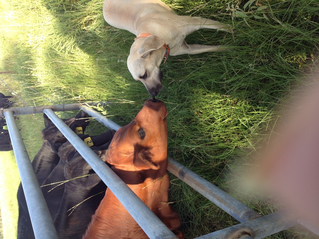 Yellar Dog checking out the calves.
