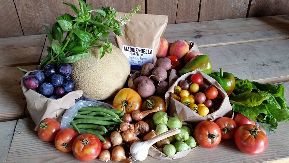 Summer large vegetable share bounty with coffee and fruit share