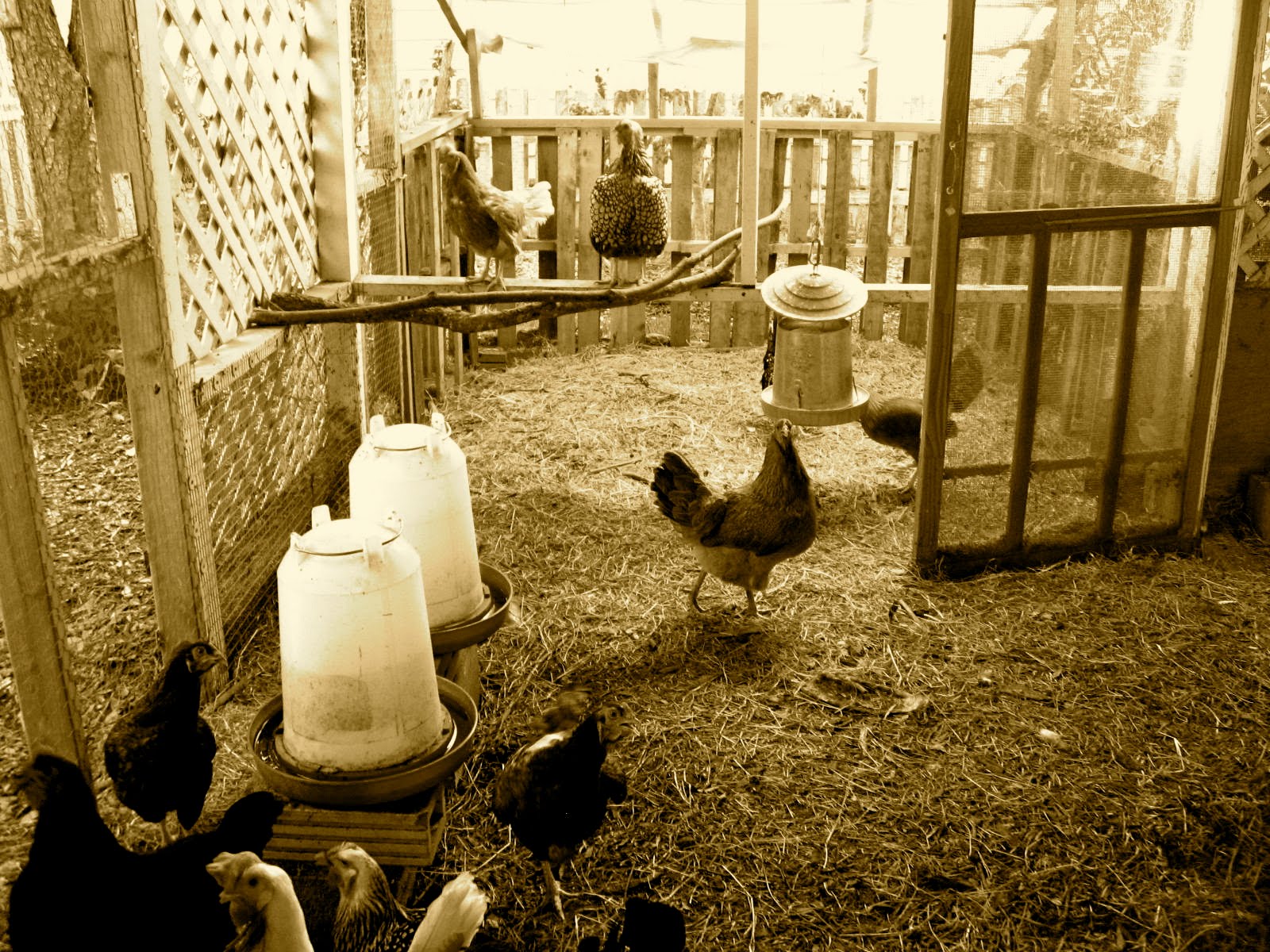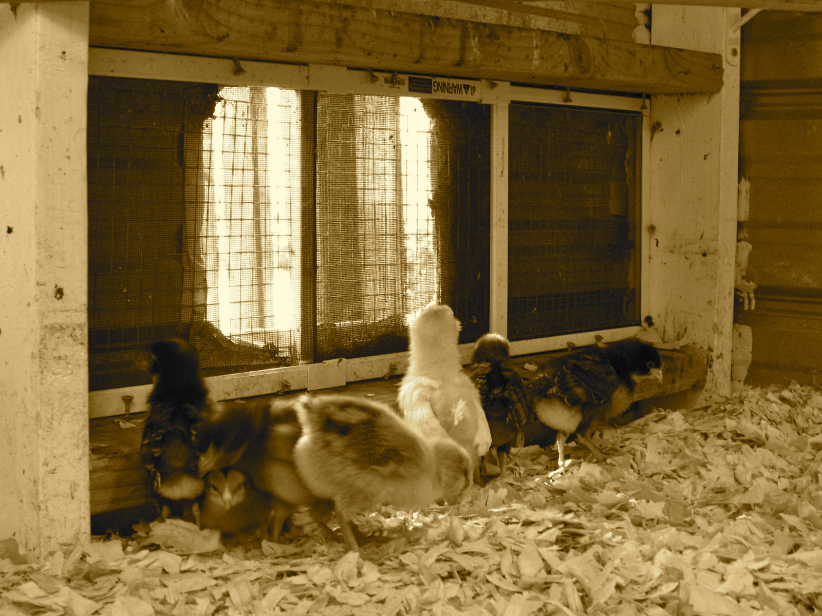 i just checked in on the wee birdies and they are doing more than fine. several were snoozing. others were admiring the fine view and others were pecking away at the tin - i imagine making music or sending out the wee chick rap to the rest of the girls on the homestead.