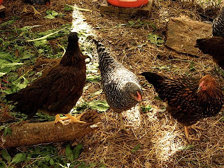 *i feed the ladies locally milled coyote creek organic feed. they also enjoy organically grown greens, tomatoes and the occasional melon from the garden, along with any goodies they can scratch up with their own two chickeny feets.