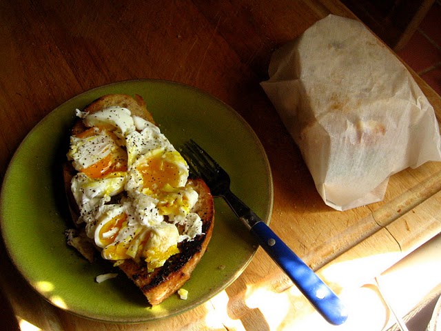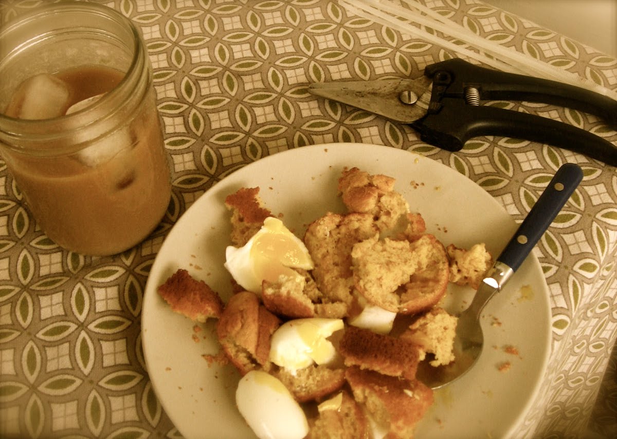 i enjoyed my bit of honey over a few soft boilers atop of my early morning whole wheat eggy muffins. yup eggs on eggy muffins. there are times in a chickenfarmer's days when the egg supply exceeds the demand. and it is the clever and creative farmer that finds ways to make good use of them.