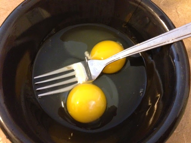 Beat in eggs, one at a time.