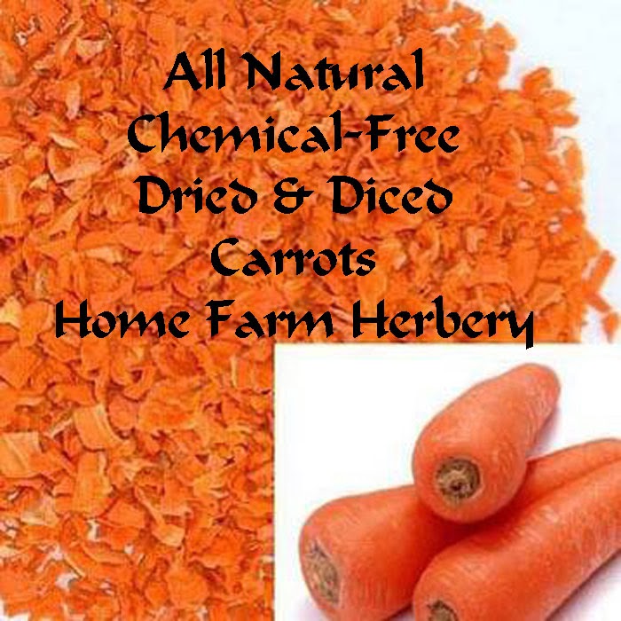 Our Home Farm Herbery Carrots Diced and Dried is just the thing to use when you make pasta and breads, soups, on pizza, chicken and salads.   Our Carrots Diced and dried take up less room than cans in your pantry or in your freezer and they have a longer shelf life.   We love this about it but we love the flavor better.  We have been able to maintain a subtle, sweet and pleasant authentic carrot flavor in the taste and a great carrot aroma.