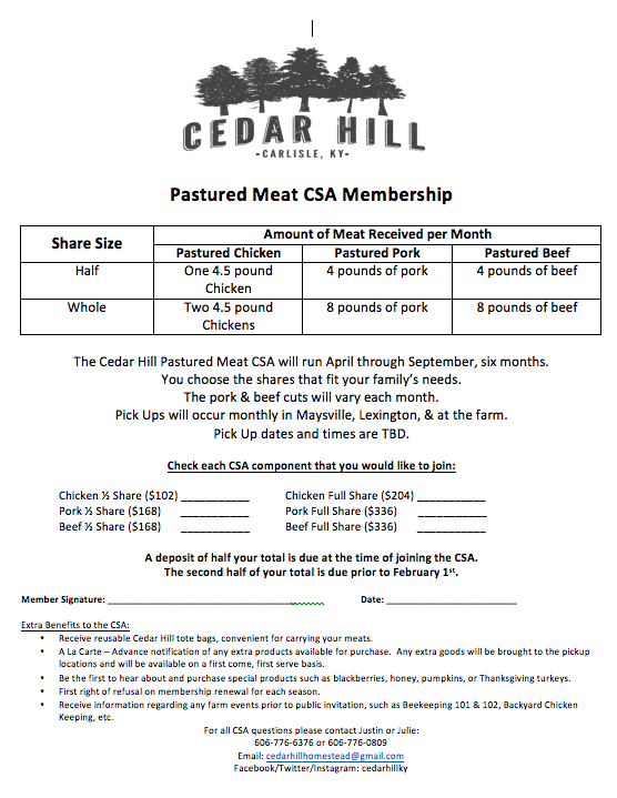 Cedar Hill Pastured Meats CSA
