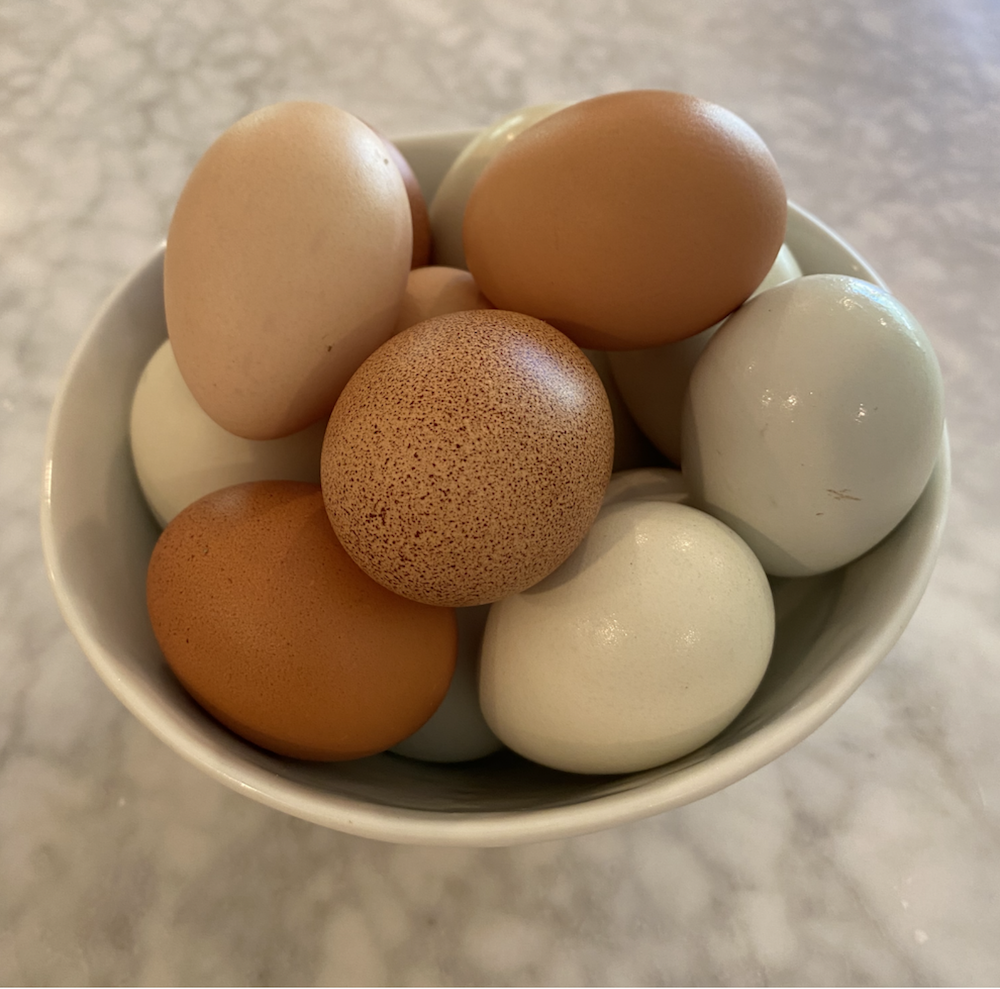 We sell brown and blue eggs