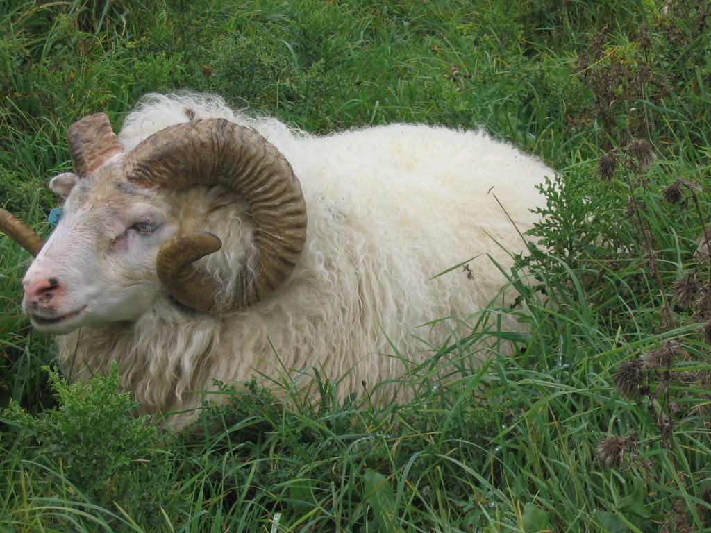 Sheep grazing in the young peach-apple-pear orchard