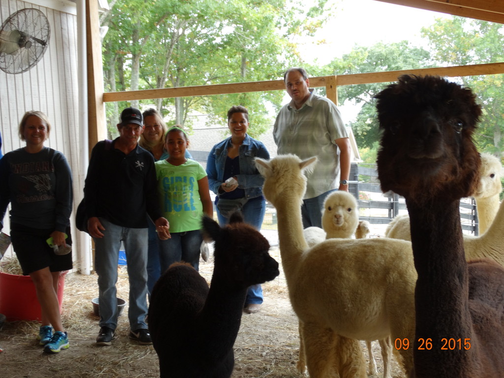 Church group enjoying alpacas