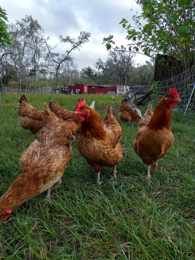 Pasture Raised Cage Free Chicken Eating Eggs and Meat