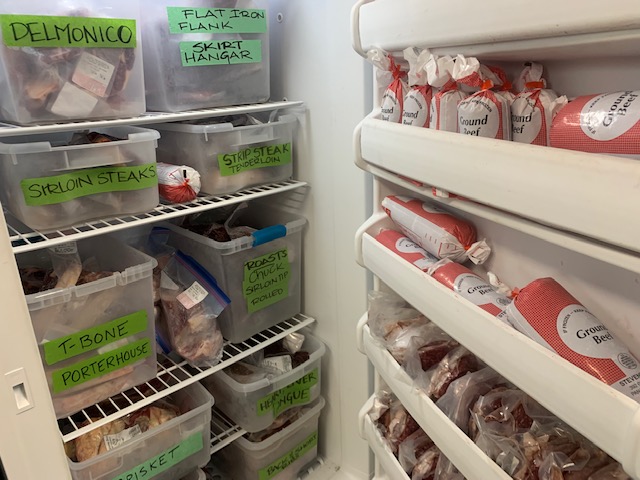 a freezer full of grass fed beef cuts