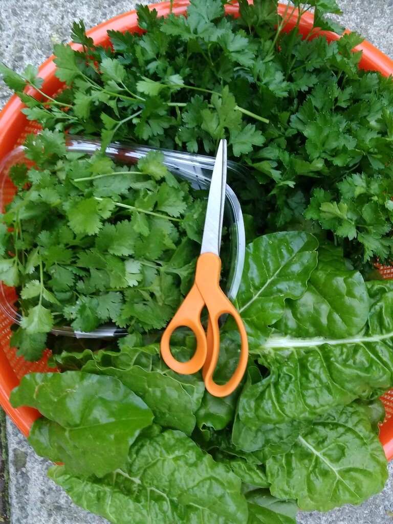 Harvest of beautiful herbs and greens.