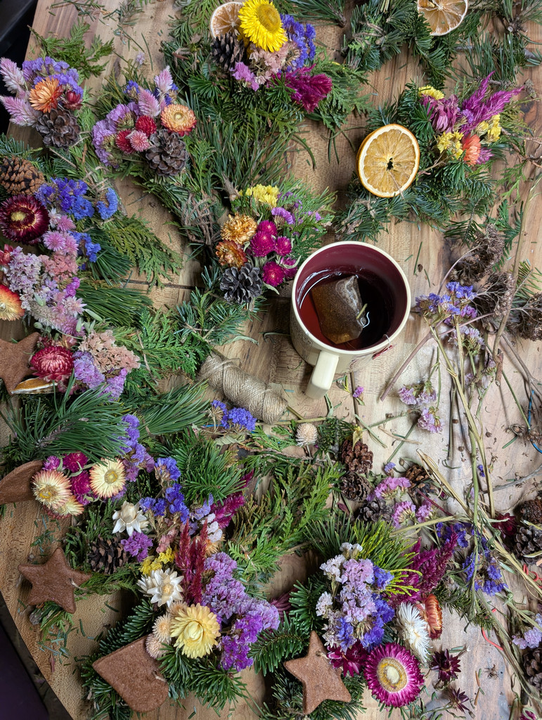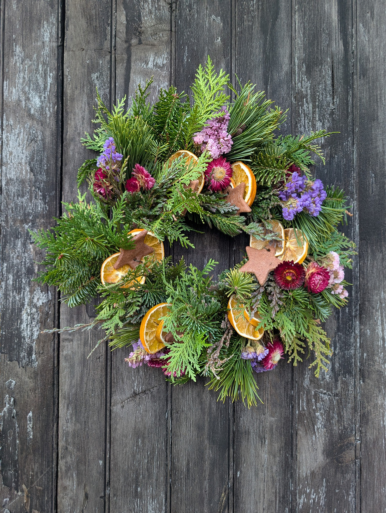 Evergreen Wreath with dried flowers (sustainably foraged)