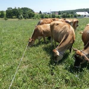 Our cows grazing out in the bright sunshine