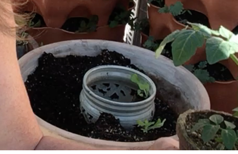 Orchid pot makes tiny worm bin in container garden