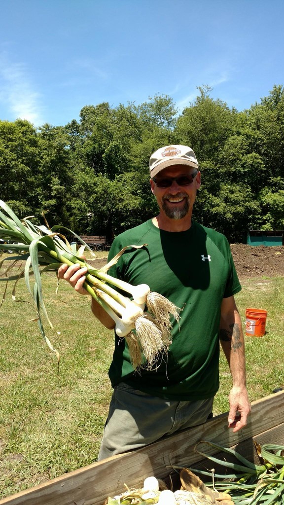 Farmer Moon with our 2017 Bavarian Purple Garlic Harvest