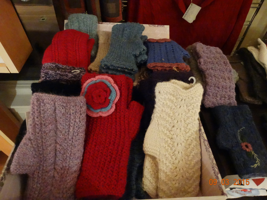 Luxurious alpaca hats, gloves, scarves at farm store