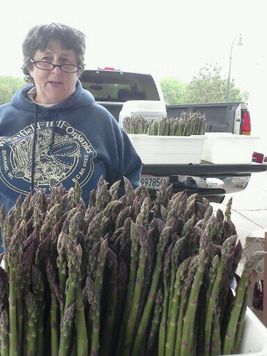 Helen at the Eau Claire Downtown Farmers' Market with Asparagus